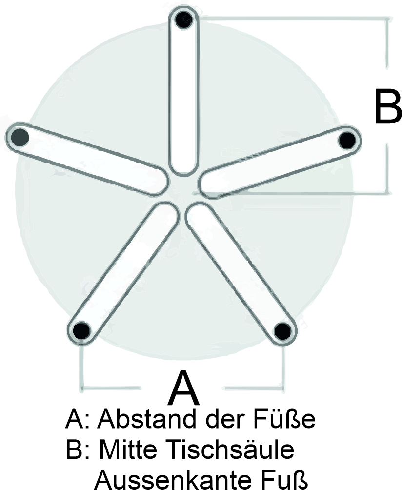 Bitte geben Sie die Maße Ihres Stehtisches an: Höhe, Tischplattendurchmesser und den Fußabstand von der Mitte zur Außenkante des Fußes und Abstand der Füße außen.